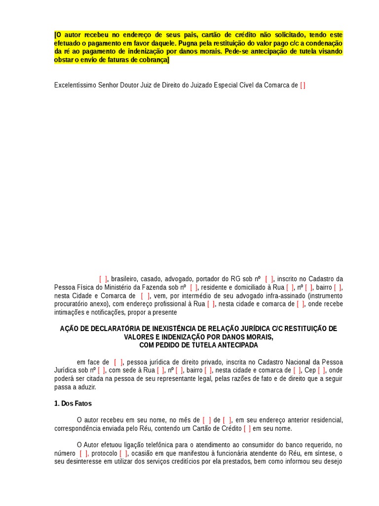 Leia as informações sobre Envio De Cartão De Credito Não Solicitado Dano Moral.