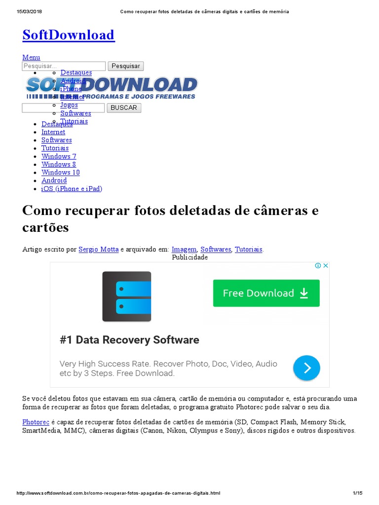 Recuperar Fotos Apagadas Cartão Memoria Camera Digital
